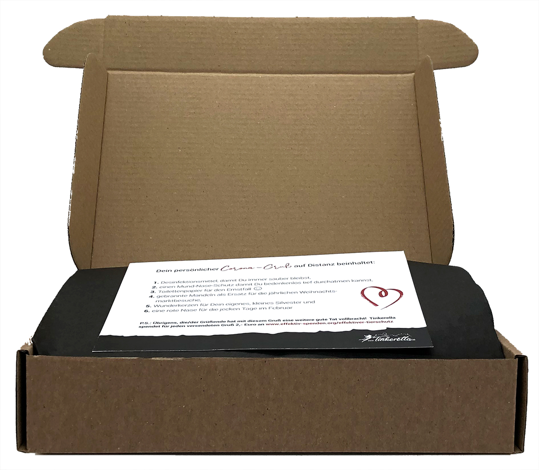 Mit dem persönlichen Corona-Gruß von Tinkerella® kannst Du jetzt sorgenfrei und unkompliziert jemandem ein echtes Lächeln ins Gesicht zaubern.
