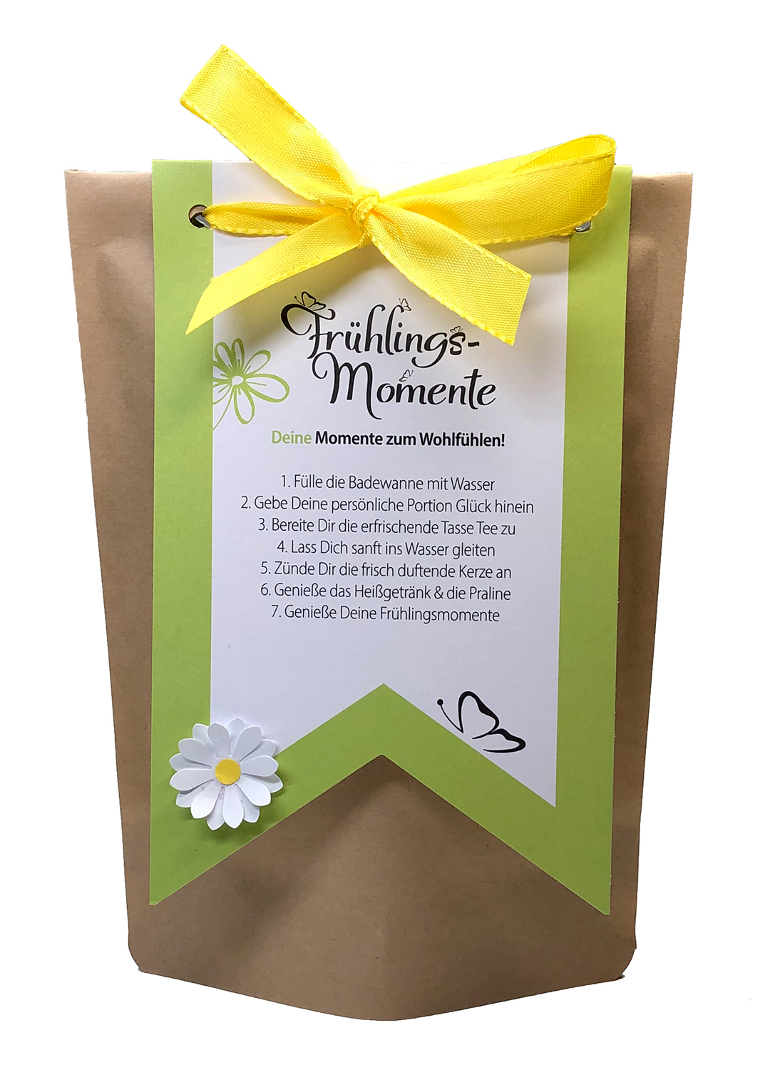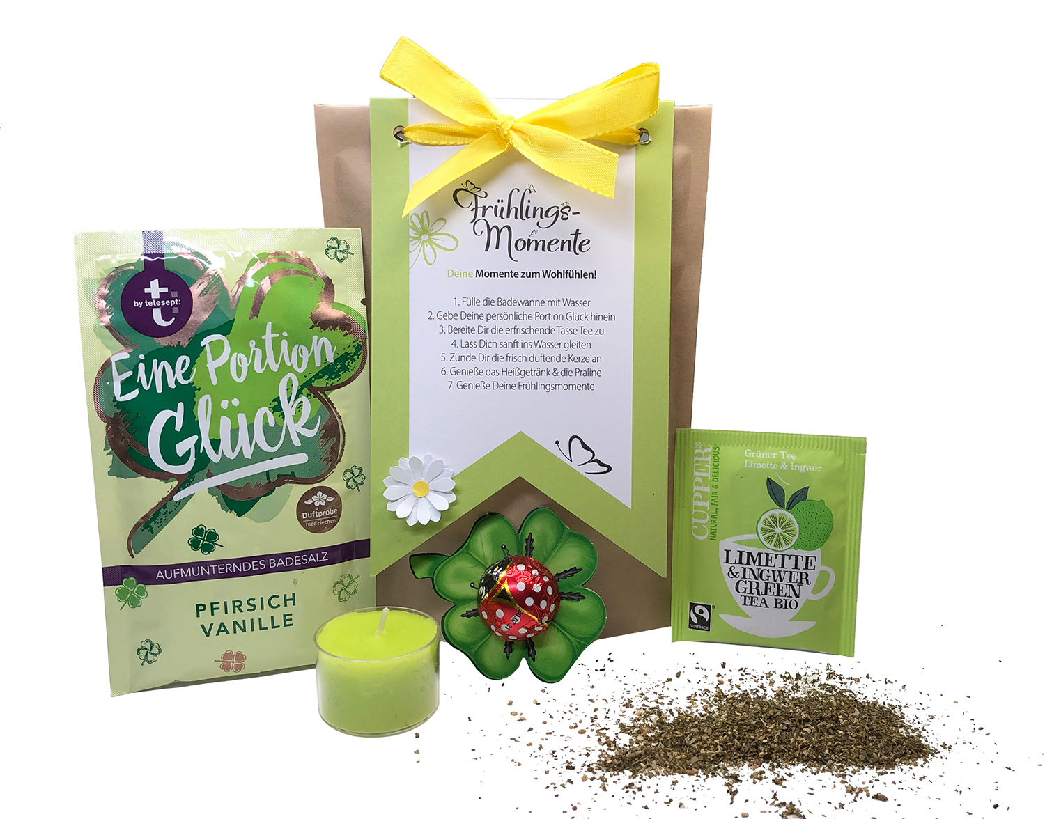 In unserem Geschenk-Set „Frühlings-Momente“ befindet sich alles, was man für eine kurze, angenehme und entspannende Auszeit benötigt. Aber natürlich darfst auch du Dir damit eine kleine Pause vom Alltag gönnen!